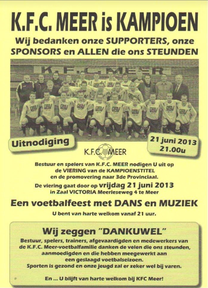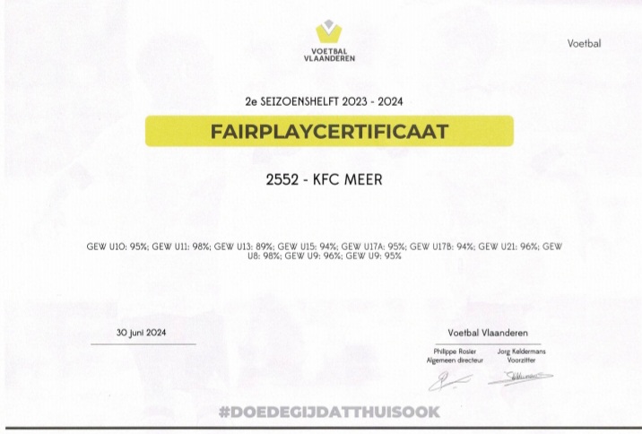 K.F.C. Meer is trots dit certificaat te hebben mogen ontvangen.