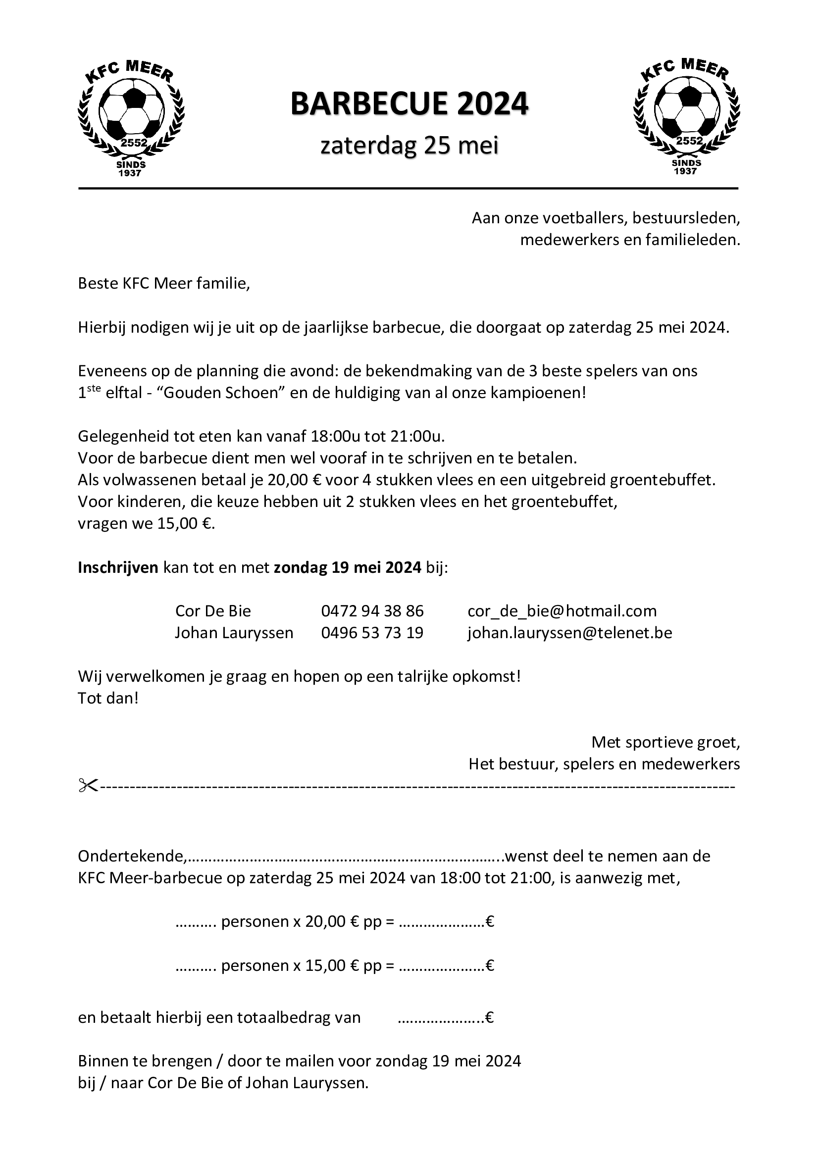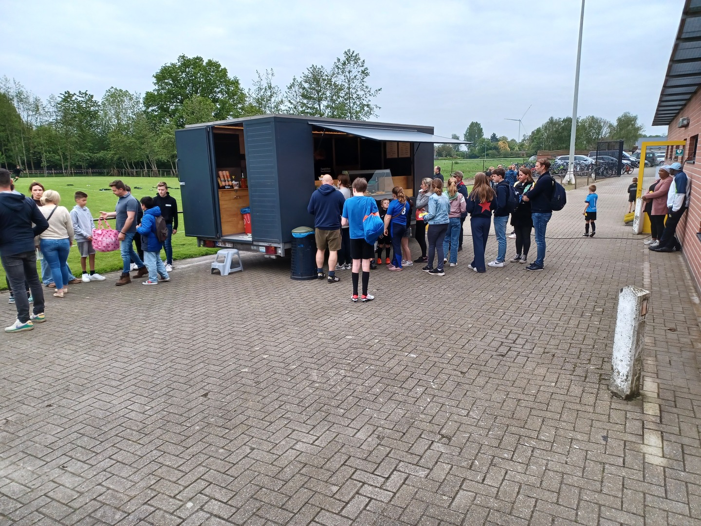 Woensdag 9 mei werd weer een hoogdag in de club geschiedenis. De jaarlijkse familiedag op het einde van het seizoen werd wederom onder massale belangstelling bijgewoond. Je kon er wedstrijden bijwonen van onze jeugdploegen tegen hun respectievelijke ouders en in sommige gevallen grootouders. Ook kon je genieten van een lekker frietje met bijhorende snack om nadien ook nog gezellig bij te keuvelen bij een smakelijke pint. Op onderstaande foto zie je de druk bezochte frietkraam. Weldra vind je meerdere foto's van dit evenement op onze website www.kfcmeer.be bij galerij.